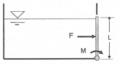 정수력에 의해 수직평판의 힌지(hinge)점에 작용하는 단위폭 당 모멘트를 바르게 표시한 것은? (단, ρ는 유체의 밀도, g는 중력가속도이다.)