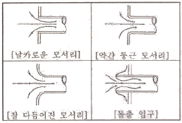 다음과 같은 유동형태를 갖는 파이프 입구 영역의 유동에서 부차적 손실계수가 가장 큰 것은?
