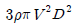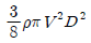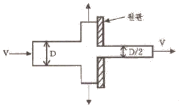 그림과 같이 중앙부분에 구멍이 뚫린 원판에 지름 D의 원형 물제트가 대기압 상태에서 V의 속도로 충돌하여, 원판 뒤로 지름 D/2의 원형 물제트가 V의 속도로 흘러나가고 있을 때, 이 원판이 받는 힘은 얼마인가? (단, ρ는 물의 밀도이다.)