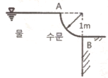 아래 그림과 같은 반지름이 1m이고, 폭이 3m인 곡면의 수문 AB가 받는 수평분력은 약몇 N인가?