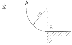 폭이 4m이고 반경이 1m인 그림과 같은 1/4원형 모양으로 설치된 수문 AB가 있다. 이 수문이 받는 수직방향 분력 Fv의 크기(N)는?