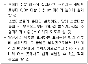 다음 설명은 미분무소화설비의 화재안전기준에 따른 미분무소화설비 기동장치의 화재감지기 회로에서 발신기 설치기준이다. ( ) 안에 알맞은 내용은? (단, 자동화재탐지설비의 발신기가 설치된 경우는 제외한다.)