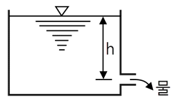 그림과 같이 수조의 밑부분에 구멍을 뚫고 물을 유량 Q로 방출시키고 있다. 손실을 무시할 때 수위가 처음 높이의 1/2로 되었을 때 방출되는 유량은 어떻게 되는가?