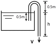 그림과 같은 사이펀에서 마찰손실을 무시할 때, 사이펀 끝단에서의 속도(V)가 4m/s이기 위해서는 h가 약 몇 m이어야 하는가?