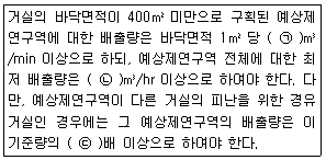 제연설비의 배출량 기준 중 다음 ( ) 안에 알맞은 것은?(관련 규정 개정전 문제로 여기서는 기존 정답인 2번을 누르면 정답 처리됩니다. 자세한 내용은 해설을 참고하세요.)