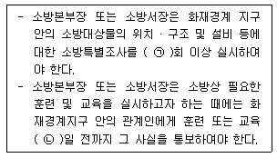 소방기본법령에 따른 화재경계지구의 관리 기준 중 다음 ( ) 안에 알맞은 것은?