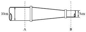 그림과 같이 단면 A에서 정압이 500kPa이고 10m/s로 난류의 물이 흐르고 있을 때 단면 B에서의 유속(m/s)은?