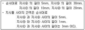철강 재료의 자분탐상 시험방법 및 자분모양의 분류(KS D0213)에 따라 동일 직선상에 길이가 다른 4개의 선상자분 모양이 다음과 같이 검출되었다. 옳게 분류된 것은?