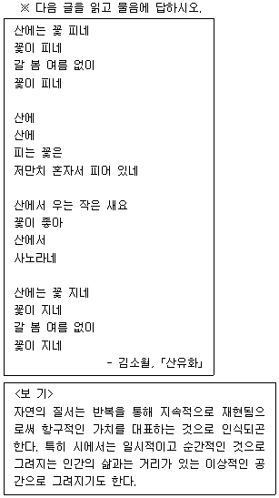 <보기> 를 고려할 때 윗글에 대한 감상으로 적절하지 않은 것은?