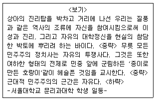 <보기> 선언문의 발표 후에 있었던 사건으로 가장 적합하지 않은 것은?