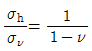 다음 중 암반 내 작용하는 수직방향지압(ϵv)에 대한 수평방향지압(σh)의 비를 나타내는 측압계수 K를 올바르게 표기하는 것은? (단, 수평방향의 변형률은 0이고, v는 포아송비이다.)