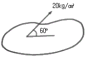 아래 그림과 같은 면상의 한 점에 면과 60°의 방향으로 20kg/cm2의 응력이 작용하고 있을 때 이점에서의 수직응력(㉠)과 전단응력(㉡)은?