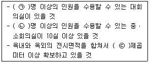 다음은 국제회의산업 육성에 관한 법령상 국제회의시설 중 전문회의시설의 규모에 관한 요건이다. ( )안에 들어갈 숫자를 올바르게 나열한 것은?