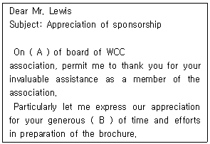 다음은 후원단체에 대한 감사의 서한이다. ( )에 알맞은 것은?