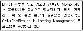 다음에서 설명하는 컨벤션 관련 국제기구는?