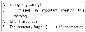 다음 대화의 ()안에 들어갈 가장 알맞은 것은?