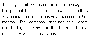 다음 글을 읽고 물음에 답하시오. Why is the company going to raise prices of its food products?