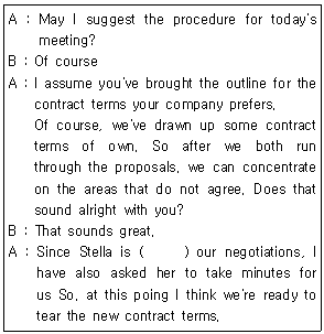 다음은 계약 조건에 관한 대화문이다. ()에 가장 알맞은 것은?