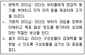 <보기>에서 리더십에 대한 이론과 설명이 바르게 연결되지 않은 것을 모두 고른 것은?