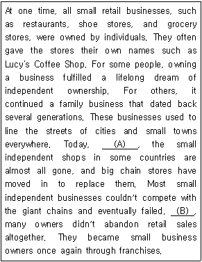 빈칸 (A)와 (B)에 들어갈 말로 가장 적절한 것은?