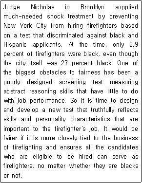 소방관 채용에서 백인에 대한 역차별 문제를 해소해야 한다.