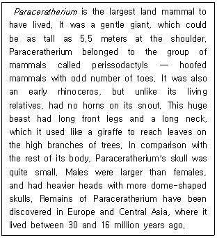 Paraceratherium에 관한 다음 글의 내용과 일치하지 않는 것은?