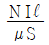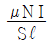투자율이 μ(H/m)이고 단면적은 S(m2)인 환상의 철심에 권수 N회로 솔레노이드를 감아서 전류 I(A)를 흘릴 경우, 평균 자로 길이는 ℓ(m)이라고 하면 철심을 흐르는 자속(Wb)은?