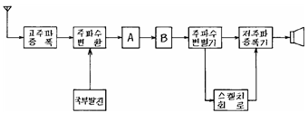 다음 블록도는 FM 수신기의 계통도이다. 빈칸에 A, B에 해당하는 명칭은?