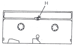 다음 그림은 VHS 방식 카세트테이프의 후면 모양을 나타내었다. 구멍 H의 역할은?