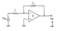 다음 연산증폭기 회로에서 Z=50[㏀], Z1=500[㏀]일 때 전압증폭도(A∨1)는?