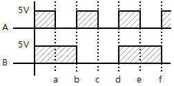 그림의 파형 A, B가 AND 게이트를 통과했을 때의 출력 파형은?
