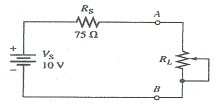 회로의 전원 VS가 최대 전력을 전달하기 위한 부하 저항 RL의 값은?