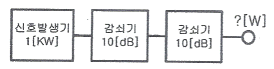 1[kW]의 출력을 갖는 신호 발생기의 출력에 10[dB]의 감쇠기 2대를 연결하여 사용하면 최종 출력은?
