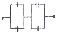 그림과 같은 4개의 콘덴서회로의 합성 정전용량은 얼마인가? (단, 각 콘덴서의 값은 4[㎌]이다.)