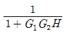 전달함수 G1, G2, H를 갖고 있는 요소를 아래와 같이 접속할 때 등가 전달함수 y/x는?