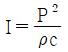 다음 중 소리의 세기를 구하는 식으로 옳은 것은? (단, I : 소리세기, P : 음압의 실효치, ρ : 매질의 밀도, c : 음속)