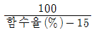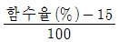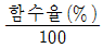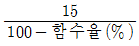 용출시험방법에서 사용되는 용출시험 결과에 대한 수분함량 보정식은? (단, 시료의 함수율 85% 이상이다.)
