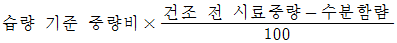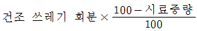 습량기준 회분율(A, %)을 구하는 식으로 맞는 것은?