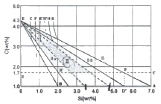 그림은 주철에 있어서 Si와 C양에 따른 조직의 변화를 나타낸 마우러의 조직도이다. 여기서 Ⅱ영역(E′~H′ 사이 영역) 조직으로 옳은 것은?