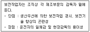 다음 내용은 설비보전조직에 대한 설명이다. 어떤 조직의 형태에 대한 설명인가?