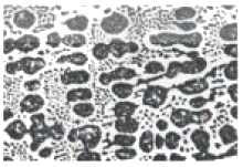 2.11%C의 오스테나이트와 6.67%C의 시멘타이트의 공정 조직으로 그림과 같은 조직을 무엇이라고 하는가?
