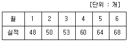 다음 표를 참조하여 5개월 단순 이동 평균법으로 7월의 수요를 예측하면 몇 개인가?