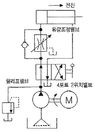 그림과 같이 실린더의 속도를 제어하기 위한 회로로서 유량조절밸브를 실린더의 입구측에 설치한 회로는?