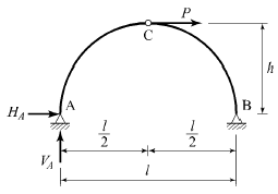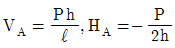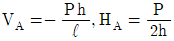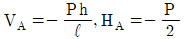 그림과 같은 3힌지 아치의 중간 힌지에 수평하중 P가 작용할 때 A지점의 수직 반력과 수평 반력은? (단, A지점의 반력은 그림과 같은 방향을 정(+)으로 한다.)