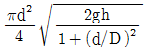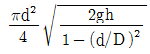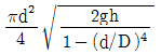 그림과 같은 노즐에서 유량을 구하기 위한 식으로 옳은 것은? (단, 유량계수는 1.로 가정한다.)
