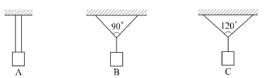 무게 1kg의 물체를 두 끈으로 늘어뜨렸을 때 한 끈이 받는 힘의 크기 순서가 옳은 것은?
