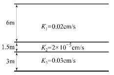 아래 그림과 같이 3개의 지층으로 이루어진 지반에서 수직방향 등가투수계수는?