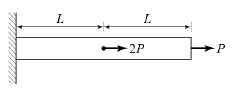 다음과 같은 부재에서 길이의 변화량(δ)은 얼마인가? (단, 보는 균일하며 단면적 A와 탄성계수 E는 일정하다.)