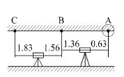 그림과 같은 터널 내 수준측량의 관측결과에서 A점의 지반고가 20.32m일 때 C점의 지반고는? (단, 관 측값의 단위는 m이다.)(오류 신고가 접수된 문제입니다. 반드시 정답과 해설을 확인하시기 바랍니다.)
