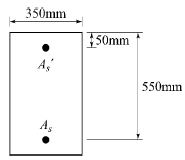 아래 그림과 같은 복철근 직사각형보에서 압축연단에서 중립축까지의 거리(c)는? (단, As=4764mm2, As=1284mm2, fck=38MPa, fy=400MPa)(오류 신고가 접수된 문제입니다. 반드시 정답과 해설을 확인하시기 바랍니다.)